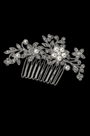 Ασημί Διακοσμητικό Μαλλιών με Κρύσταλλα και Μαργαριτάρια
