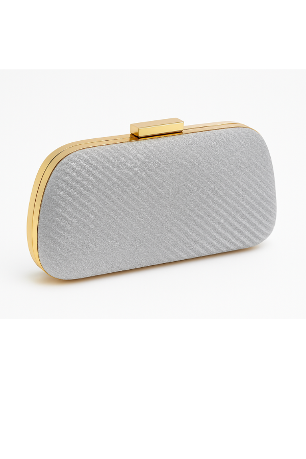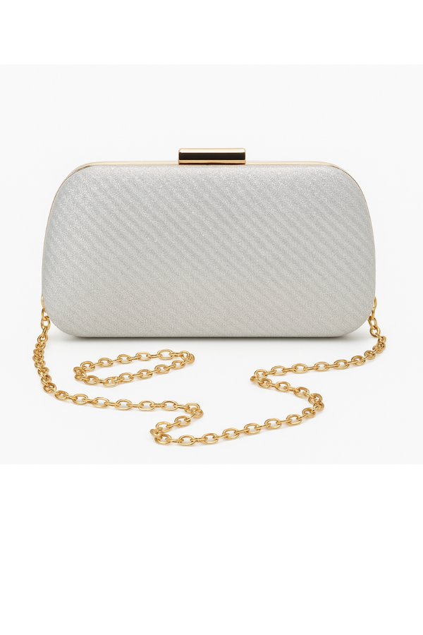 Ασημί Clutch Τσάντα με Χρυσή Αλυσίδα