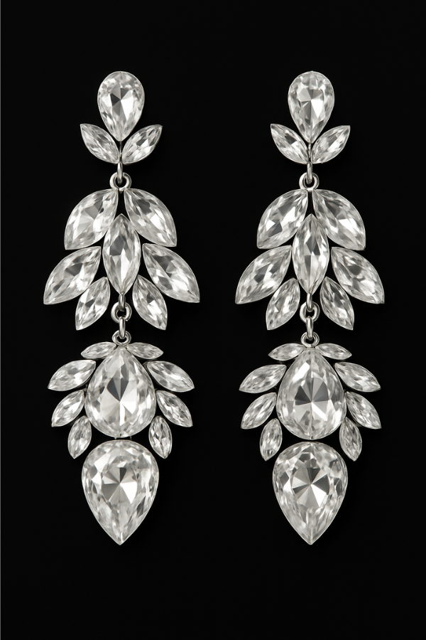 Λαμπερά και κομψά μακριά σκουλαρίκια, διακοσμημένα με διάφανους κρυστάλλους σε κοπή δάκρυ και μαρκίζ. Ο εντυπωσιακός σχεδιασμός τους τα καθιστά το απόλυτο αξεσουάρ για glamorous εμφανίσεις.