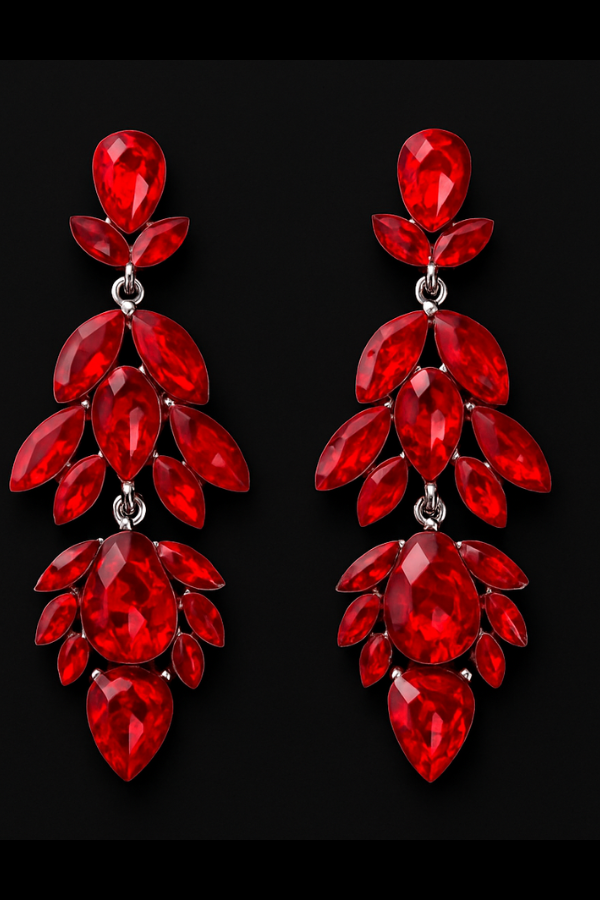 Εντυπωσιακά και λαμπερά σκουλαρίκια σε έντονο κόκκινο χρώμα, σχεδιασμένα για να ξεχωρίζουν. Οι κρύσταλλοι σε σχήμα δάκρυ και μαρκίζ συνθέτουν ένα εκλεπτυσμένο και θηλυκό σχέδιο, ιδανικό για βραδινές εξόδους και ιδιαίτερες περιστάσεις.