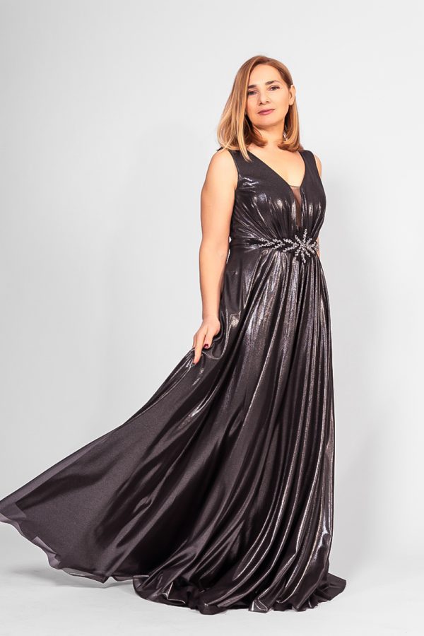 Μακρύ μεταλιζέ φόρεμα σε μαύρο  χρώμα με ανοιχτή πλάτη