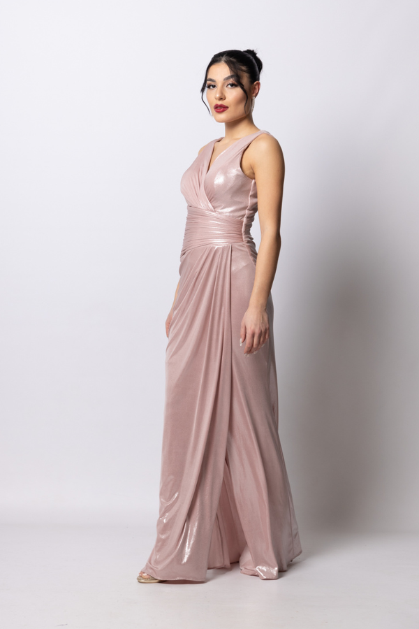 Μάξι μεταλιζέ φόρεμα σε χρώμα απαλό της πούδρας με λάμψη. Για τις επίσημες εμφανίσεις αυτό το φόρεμα θα σας βγάλει ασπροπρόσωπες για κάθε επίσημη εμφάνιση σας σε γάμο ή βάπτιση !!!
