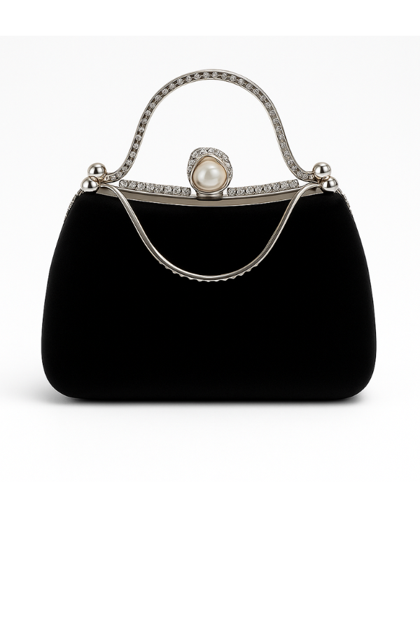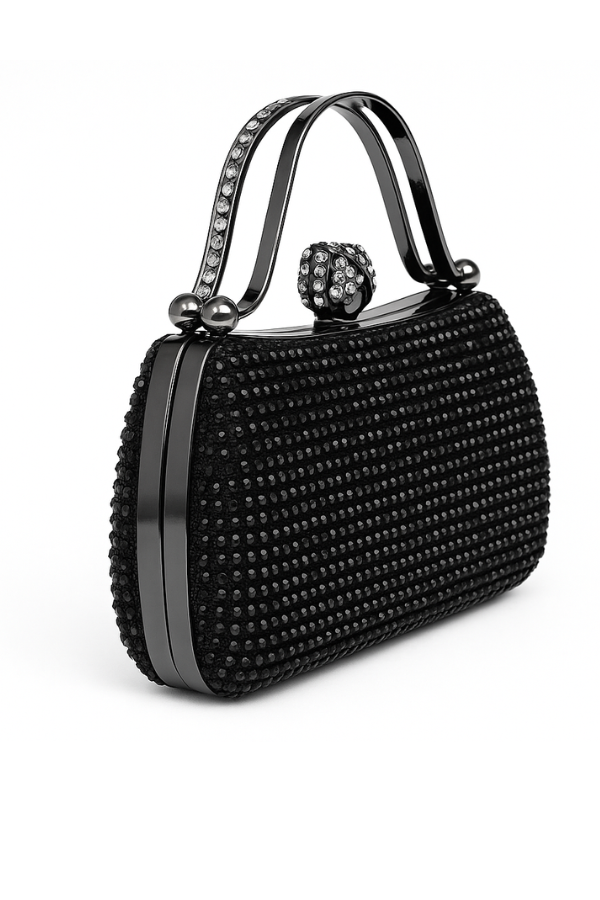 Βραδινό Τσαντάκι Clutch με Μαύρα Στρας & Μαργαριταρένιο Κούμπωμα