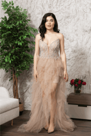 Βραδινό φόρεμα maxi γοργονέ σε ιβουάρ χρώμα