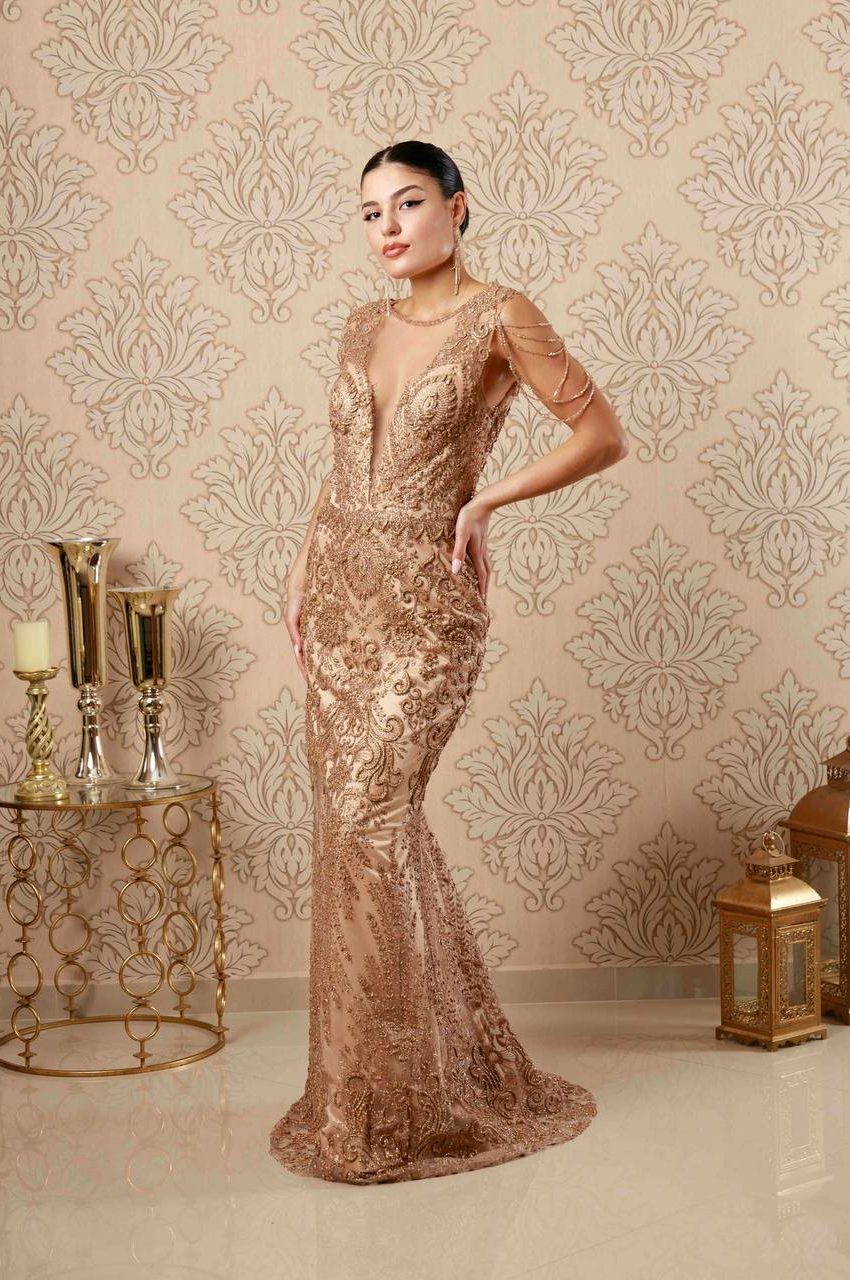 Maxi Βραδινό Φόρεμα Nude με Έναν Ώμο & Παγιέτες